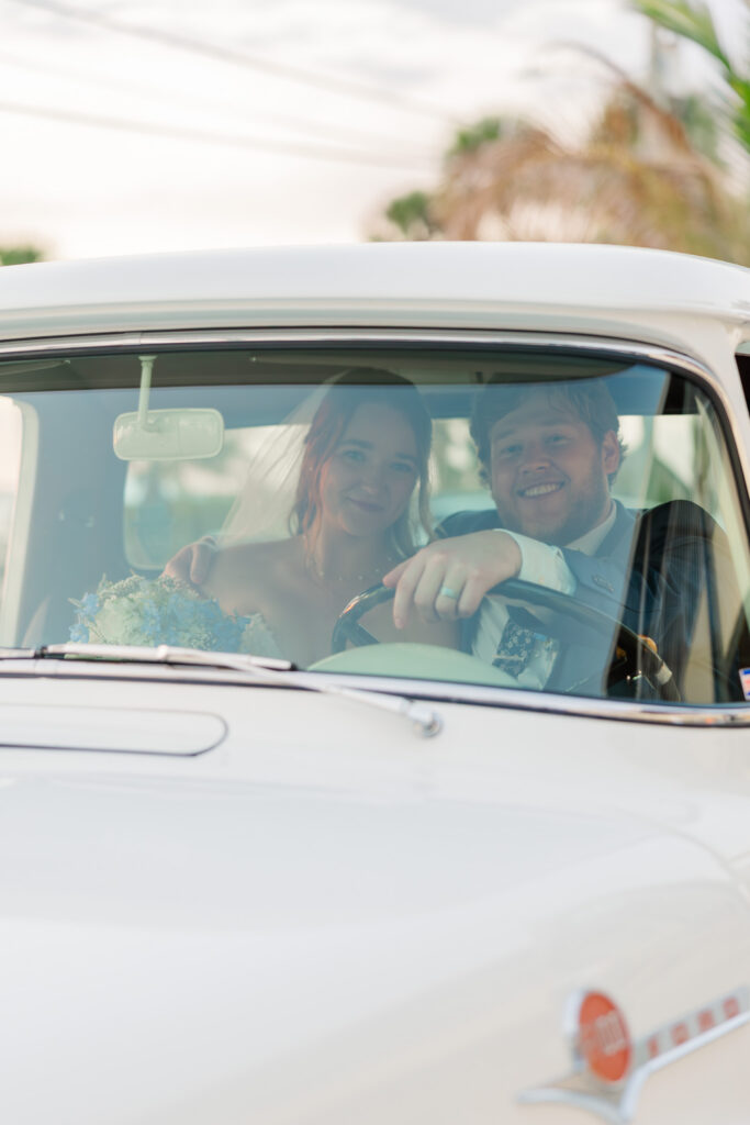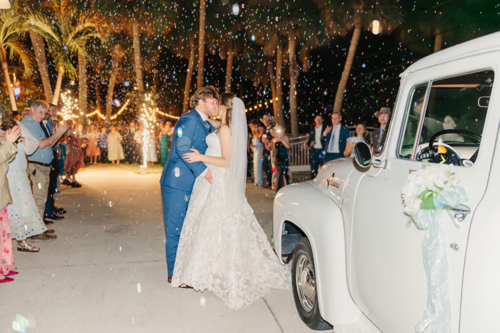 To end the night, they did a mock grand exit with sparklers and a bubble machine. Maya and Austin ran through their guests toward a vintage Ford truck with Just Married written on the back. It was so sweet and fun to see and capture.