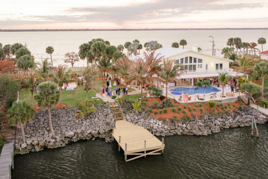 Before guests arrived, I sent my drone up to capture the ceremony and reception layout from above. It was such a pretty view I had to capture it from above. Backyard weddings along the Indian River just hit different.