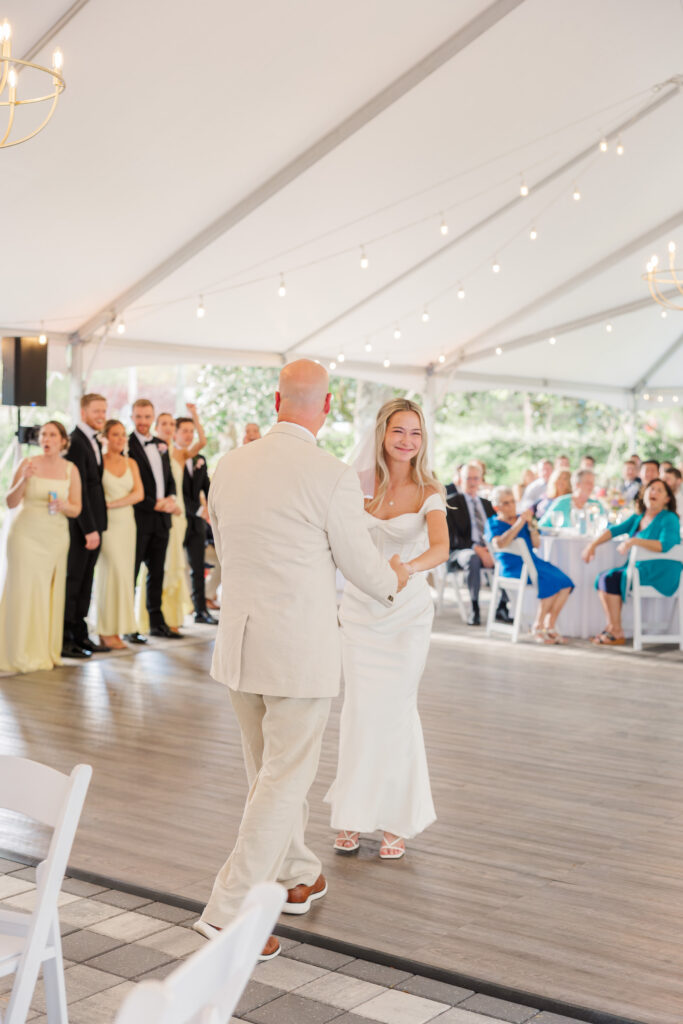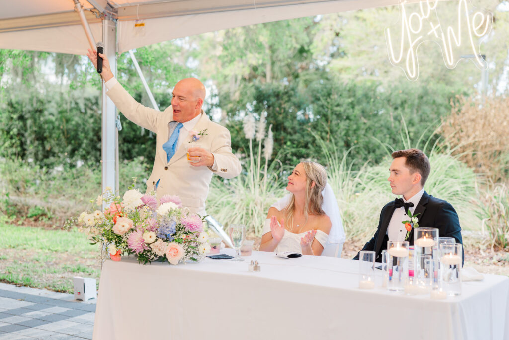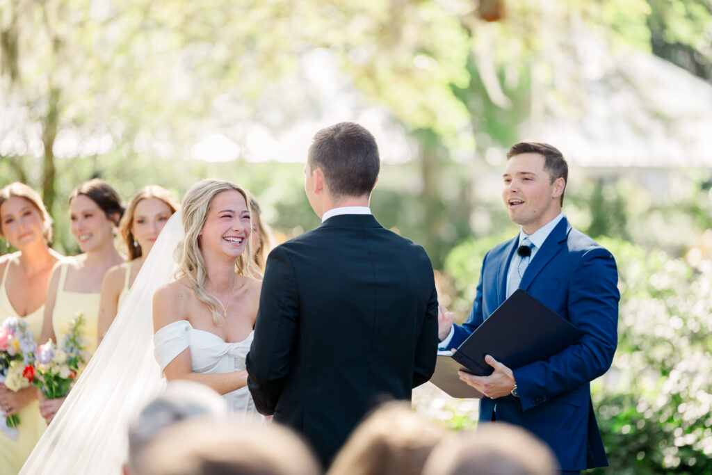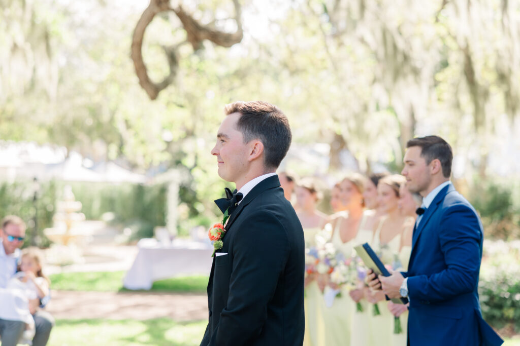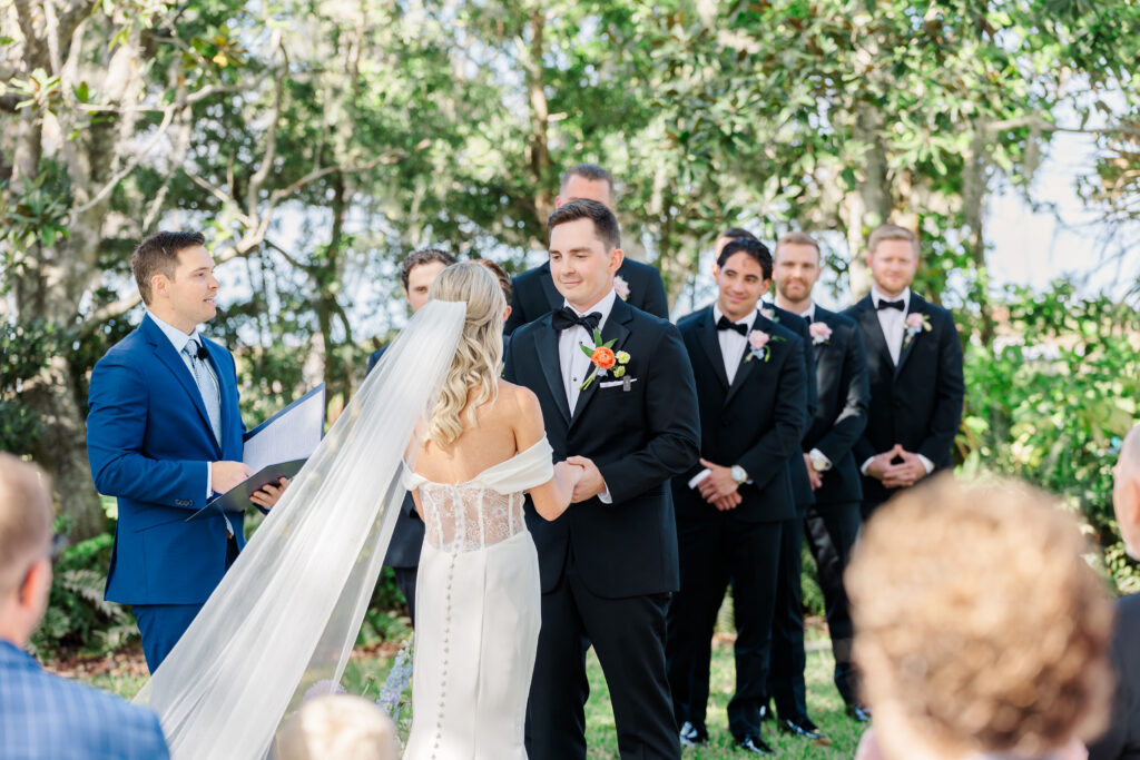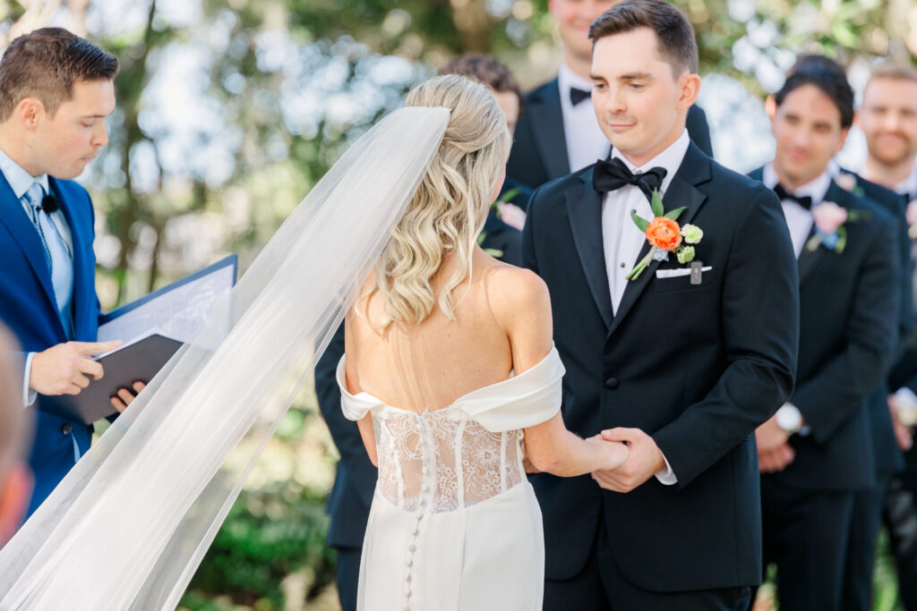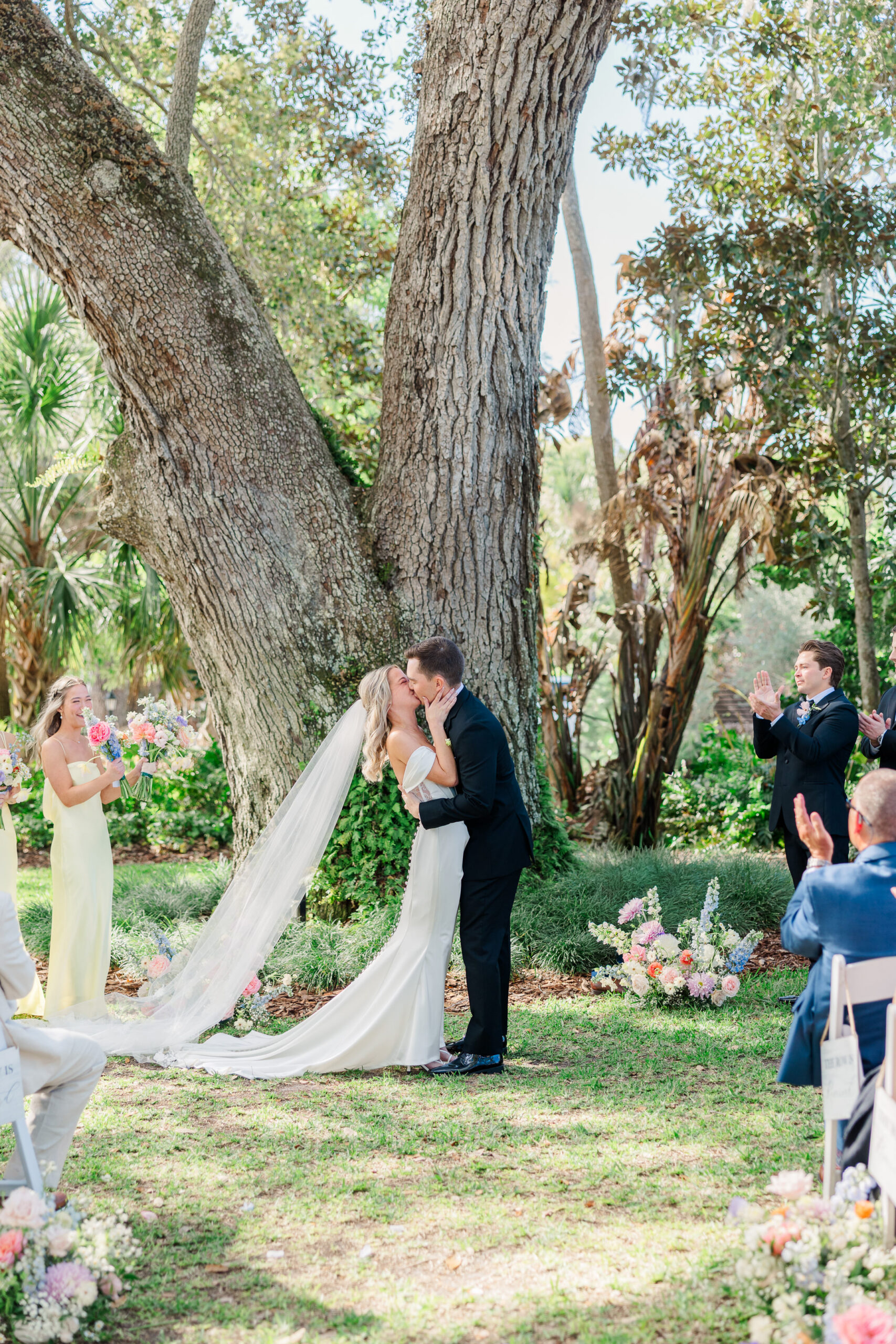The couple exchanged their vows in front of a tall, old spanish moss that is reminiscent of FSU, where they met. I don’t think they could’ve chosen a better place to say ‘I Do’!