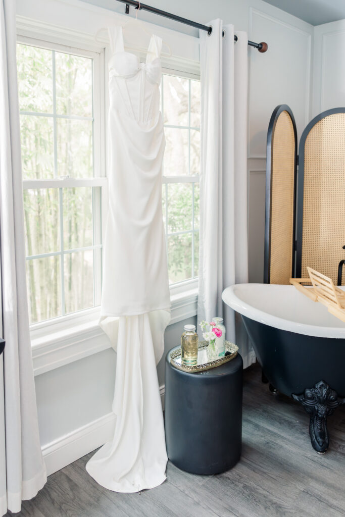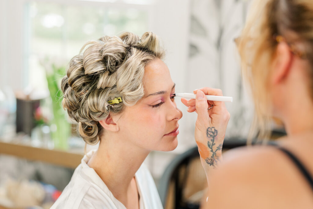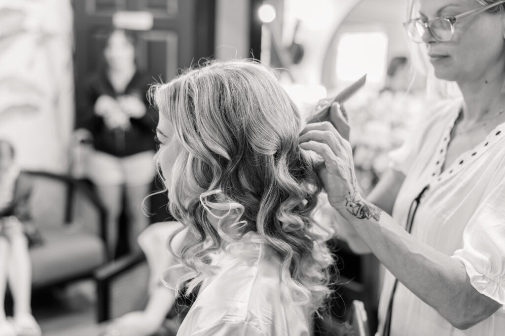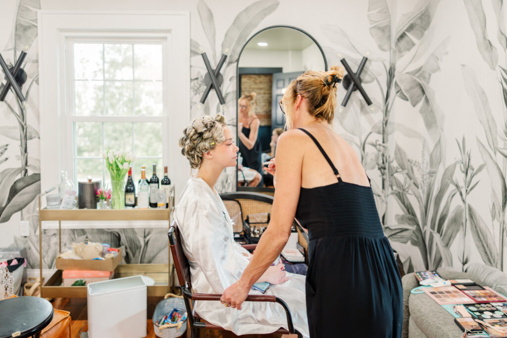 When I arrived, the energy was already in full swing. Abby was getting ready inside the house with her mom, sisters, and best friends while Max spent the morning with his groomsmen in the venue’s speakeasy.