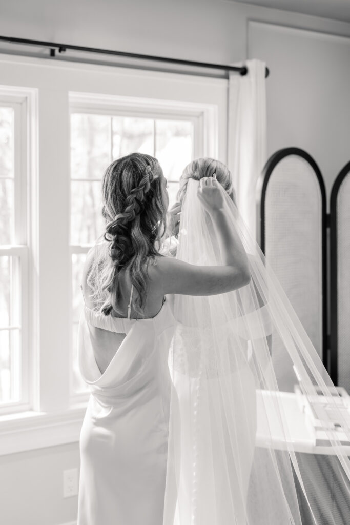 Abby got into her dress in a quiet, intimate moment surrounded by her closest people. Once she was ready, we brought her bridesmaids in for the reveal. Not the easiest task for 8 women to walk into a room with their eyes closed – but they prevailed. The big reveal was followed with emotion. Happy tears, laughter, and hugs all around. It was one of those moments that sets the tone for the rest of the day.