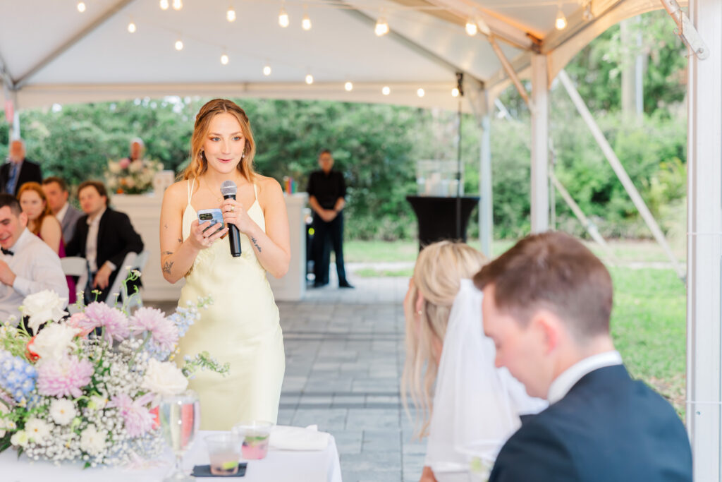 Max and Abby made their grand entrance following their bridal party, immediately bringing energy into the space. From there, the night unfolded with heartfelt toasts from the groom’s brother, Abby’s father, and her best friend. Each one added another layer to the story of who they are as a couple. Maxes brother bringing in the most laughs by a landslide. Sibling speeches never hold back.